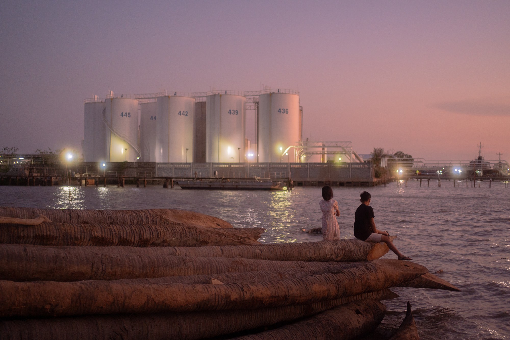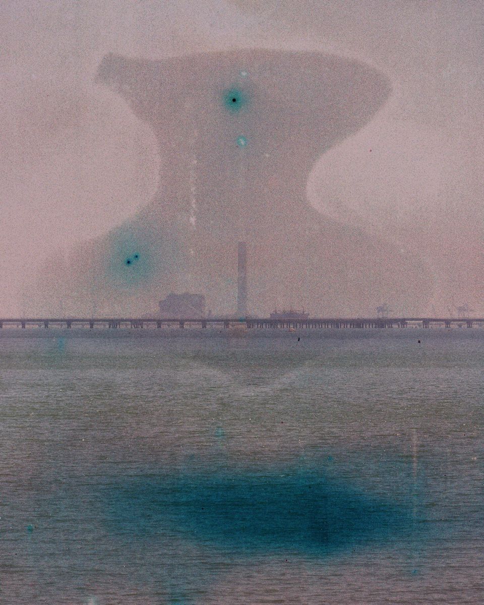 Sukrit Patjuntadusit’s series SOMETHING IN EVERYTHING presents seascapes from Rayong province, with industrial factories looming in the background. Yet this is not merely a straightforward depiction of monstrous factories against a poisoned sea. Instead, Sukrit incorporates factual material directly into the photographic process. The work does not rely on supplementary documentation displayed alongside the images, as is often seen in exhibitions. Rather, wastewater collected from the factories themselves was used in the process of developing the photographs: he soaked exposed film in this polluted water during the film-soup stage. The results are images distorted, scarred, and dissolved, appearing as though the film had been corroded by toxic waste. While in fact the destruction stemmed from technical accidents not entirely related to the water, the unsettling effect aligned seamlessly with the project’s concept. This accident transformed the work into something that breaks away from the structures of conventional documentary photography.