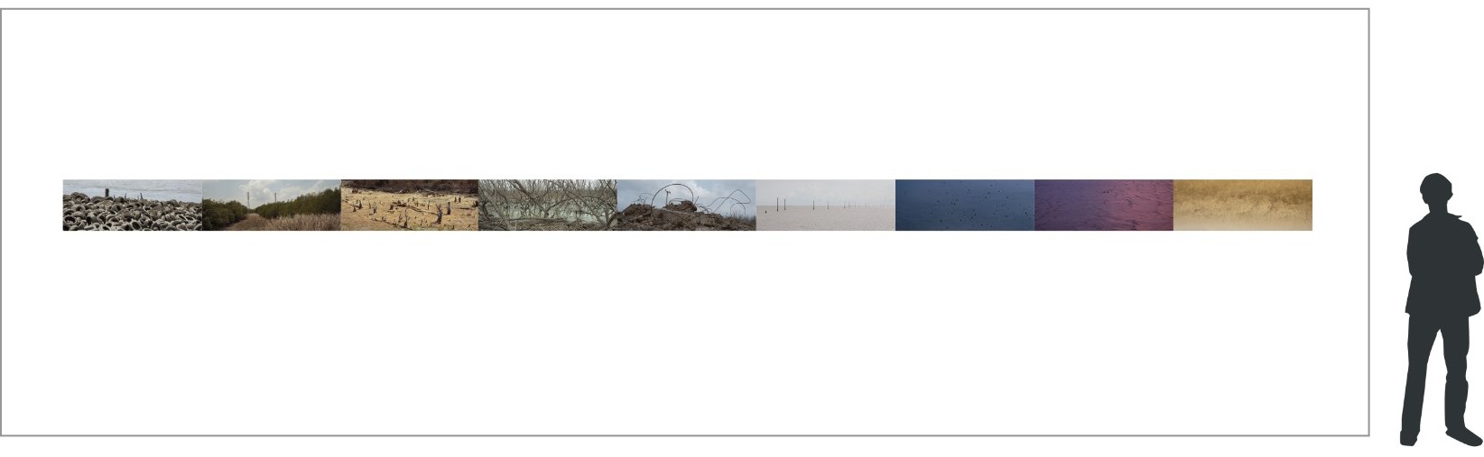 Another work, Parallel World by Satita Taratis, engages with environmental issues in a subtle yet profound way. Each wide-format photograph is presented in the cinematic proportions of Ultra Panavision 70 (2.76:1). The exhibition layout arranges the images in a long horizontal band, creating continuity under the idea of “a single world” that nonetheless contains drastically opposing environmental conditions. The sequence resembles a “spectrum band,” shifting gradually yet inevitably, reflecting the fluid exchange across the complexities of ecosystems. Satita previously exhibited Parallel World in the group show The Interpreters at MOCA in 2022, though space limitations then prevented the full realization of the spectrum-band arrangement. With a larger exhibition space now available, the work can finally be installed as intended (though at the time of writing, I have not yet seen the final result).