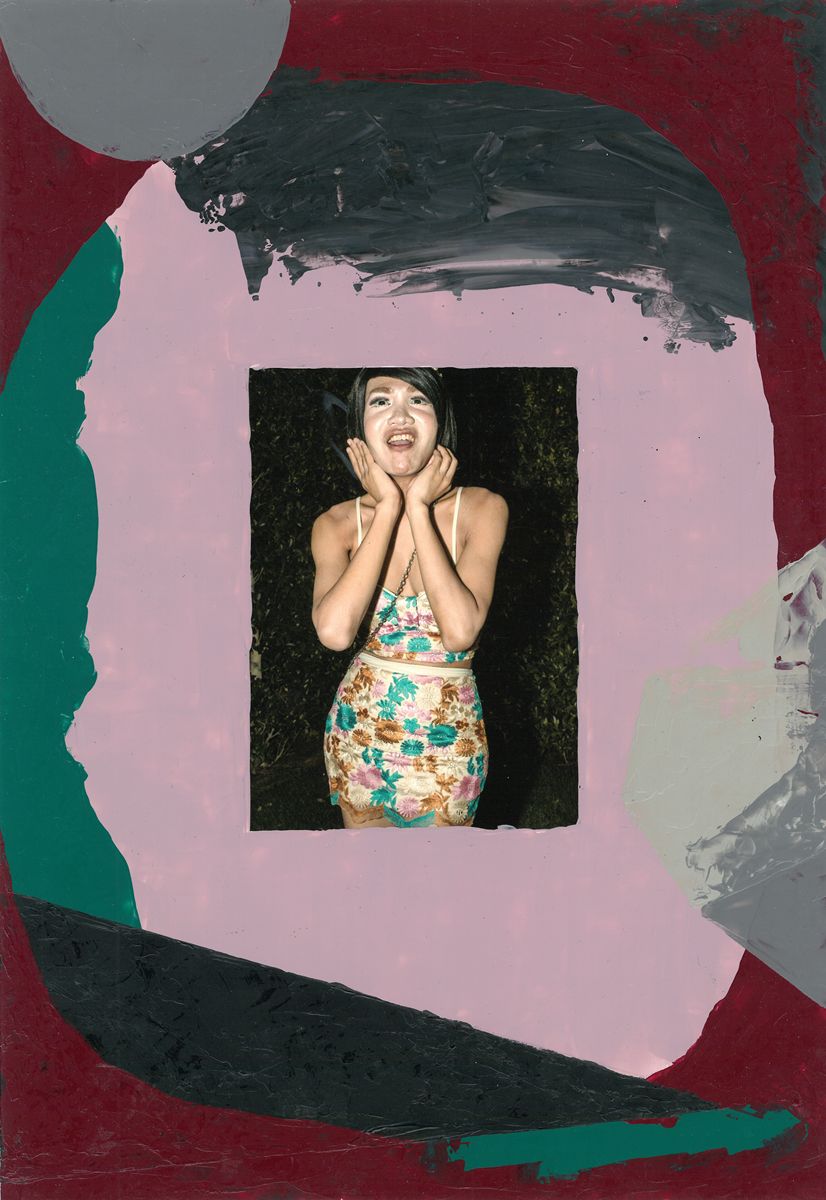 His ‘Thai-Thai’ style photographs capture unique characters, as well as strange objects and behaviors. Forming a central origin, the image radiates outward into layers of painting that frame it on all sides. This dynamic is extending boundaries toward layers of artistic medium in a different form. It serves as a dialogue of diverse artistic processes initiated by the artist to communicate with the external world, while echoing deeply into the complex landscape of the artist’s mind.