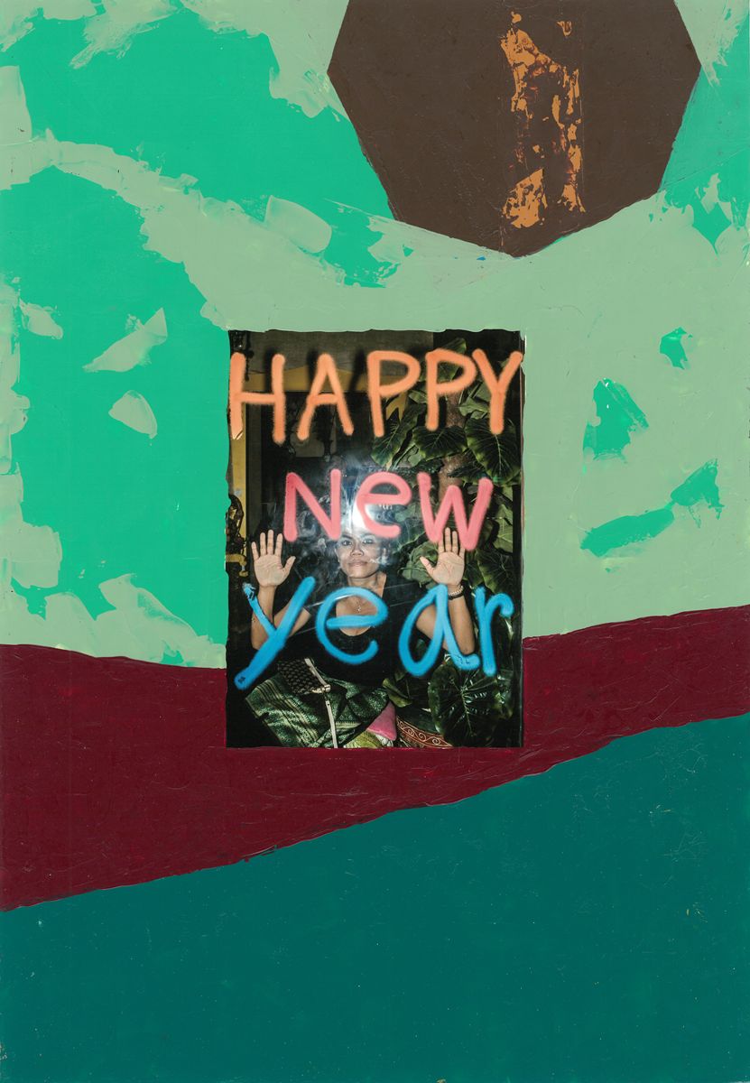 Various elements overlap simultaneously; the existence of the artist in a specific space like Thailand, his interaction with local people through the medium of photography, and the layers of paint, where both mediums support and react to one another. The work embodies internal conflicts regarding the nature of art and the systems that dominate it on another level. All this information flows into and chaotically merges within the work, blending until the elements are inseparable.