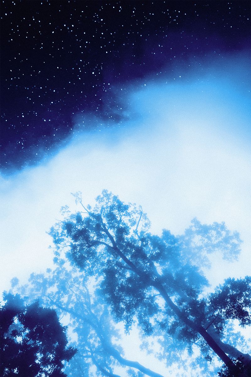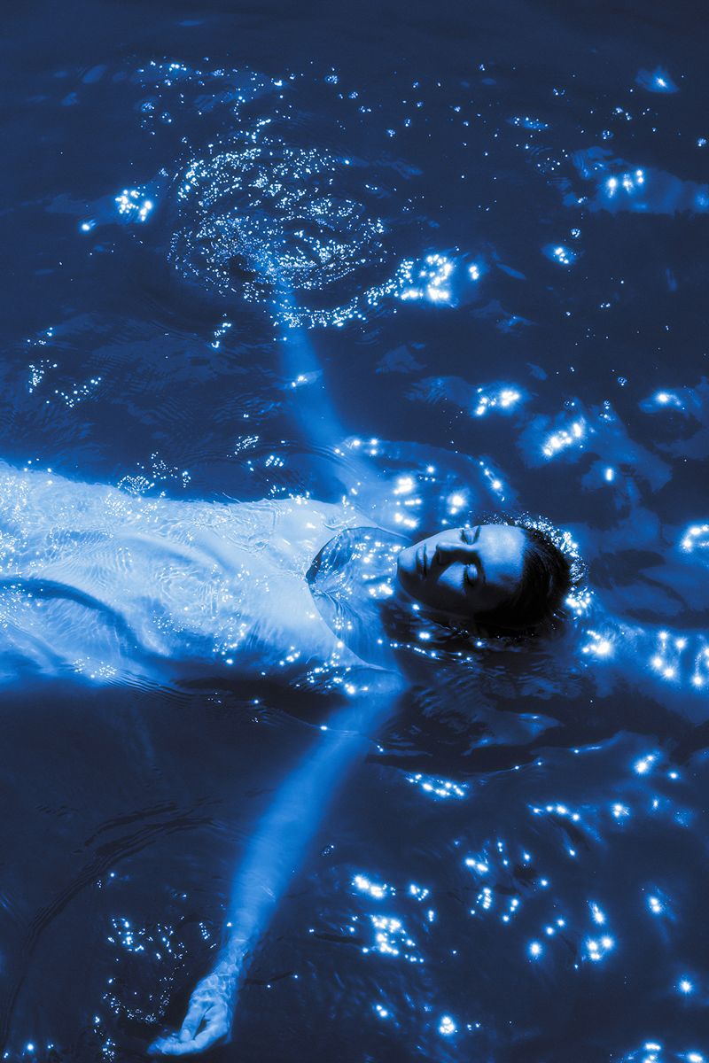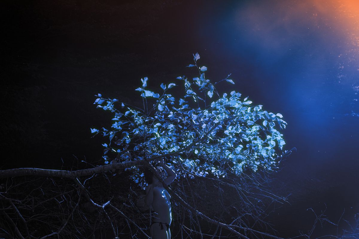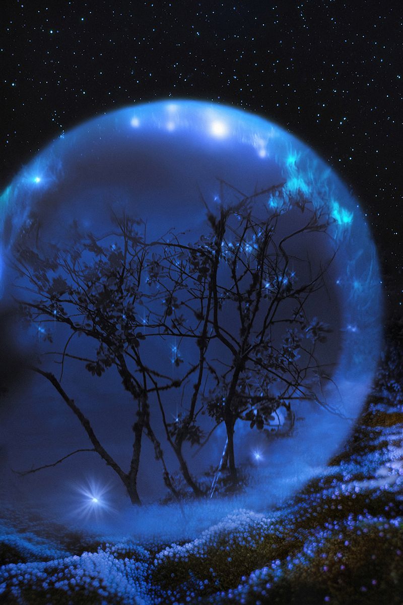 Immersion, introspection, and the surreal transformation of reality through complex photographic processes seem to form the core of these projects. Each seeks to convey poetic visual expressions born from the inner spirit and projected outward toward vast external realms such as the world, nature, and beyond. These photographic poems are cast into the infinite darkness of the cosmos, journeying toward distant frontiers and the spiritual landscapes of dreamers resting within their cocoons, until they awaken once more, bathed in deep blue light, embodied by the figure of a woman as the renewed symbol of the Earth in yet another cycle of rebirth.
