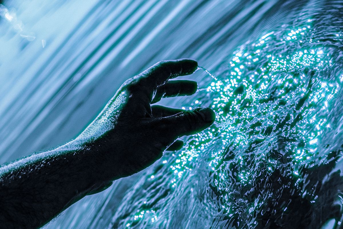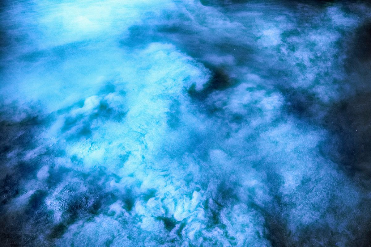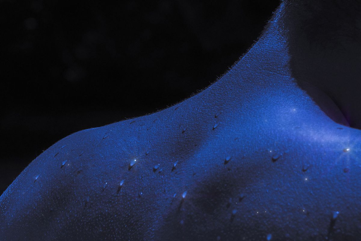 The female body becomes a symbolic link between Earth and humanity, while the planet’s gradual restoration is expressed through the shimmering reflections of light on water and skin. Her use of deep blue tones represents the cosmic forces of creation and destruction. Inspired by her hikes and encounters with the natural world; the reflection of water, the refraction of light, the soft whisper of leaves. Feidi transforms these experiences into abstract meditations on the cycles of life, the fragility of life and death, and the reciprocal yet destructive relationship between nature and humankind that perpetually renews itself.